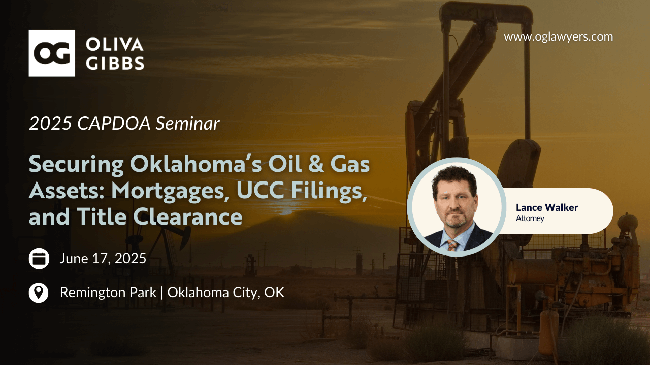 OnlineEnergy Education Series | Oklahoma Indian Law Update: Surface Use After Osage Wind & Mineral Fractionation Issues Post-2018 Stigler Act May 22 @ 12 noon – 1 p.m. https://youtu.be/kh9AeEhaldU?si=Jfnm66HpCn63k0f_ Download presentation Oliva Gibbs Attorney Lance Walker provided updates on two transformative developments in Oklahoma Indian law. Topics covered: United States v. Osage Wind, LLC Heirs […]